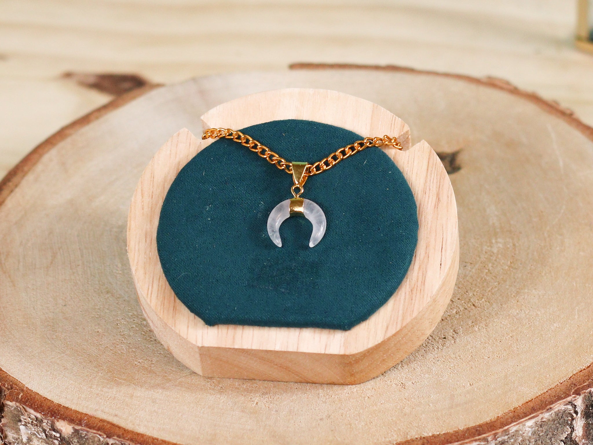 Pendentif cristal de roche lune – Clarté, intuition & amplification énergétique