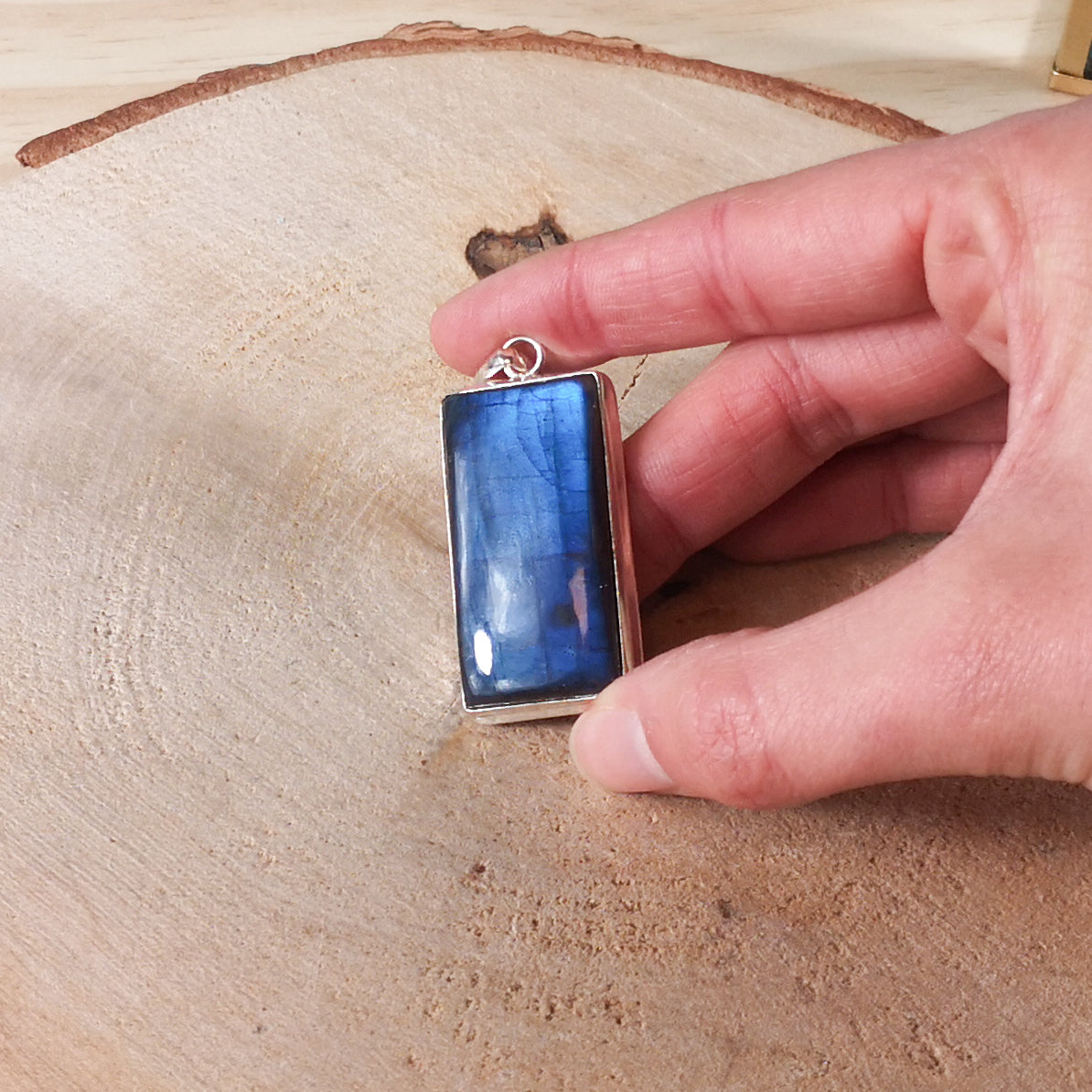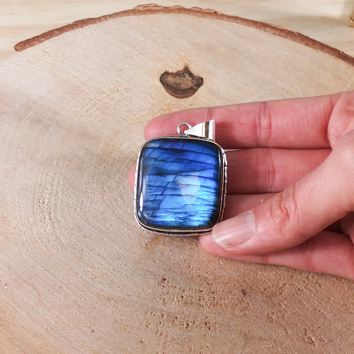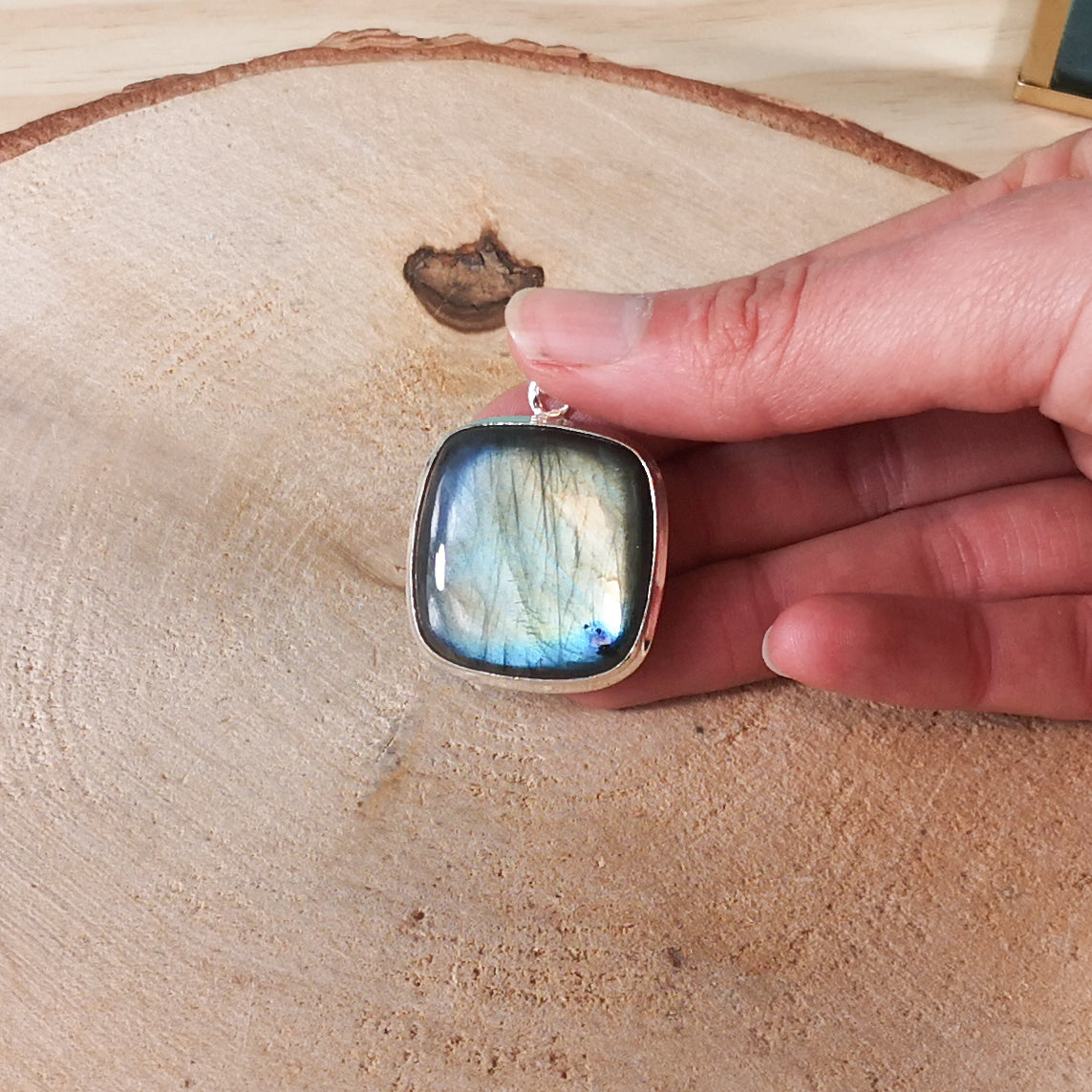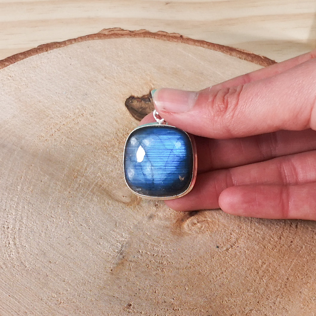 Pendentif labradorite en forme carré en argent massif 925 – Protection, intuition & ancrage