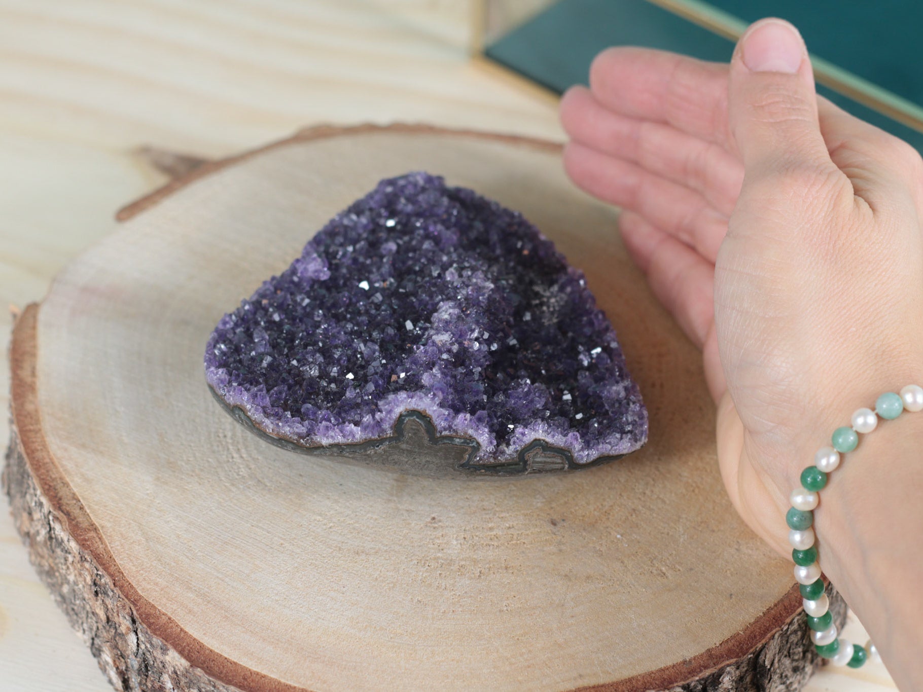Poser une pièce unique en pierre naturelle permet de profiter en continu de l’énergie de l’améthyste. Elle apporte calme et sérénité au quotidien. L'améthyste t’entoure d’une énergie protectrice qui transforme les tensions et apaise les tourments intérieurs. Véritable alliée des sorcières modernes, elle ouvre l’esprit à d’autres manières de voir le monde, stimule la créativité et aide à utiliser son intuition.