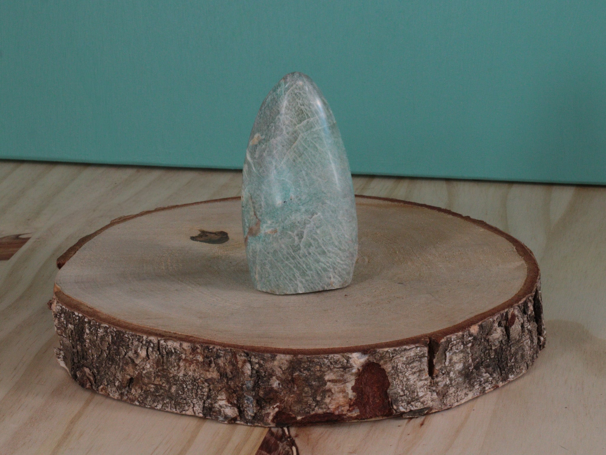 Avoir une pièce unique en pierre naturelle permet de profiter en continu de l’énergie de l'amazonite en s’entourant d’une énergie apaisante et rassurante. Cette pierre soutient celles et ceux qui traversent des périodes de stress ou de peines lourdes à porter. Elle aide à se libérer du poids émotionnel, à voir la vie sous un nouveau jour et à s’ouvrir davantage aux autres. Grâce à son lien subtil entre le cœur et la gorge, elle nous invite à exprimer nos vérités profondes depuis un espace de douceur et de sincérité.