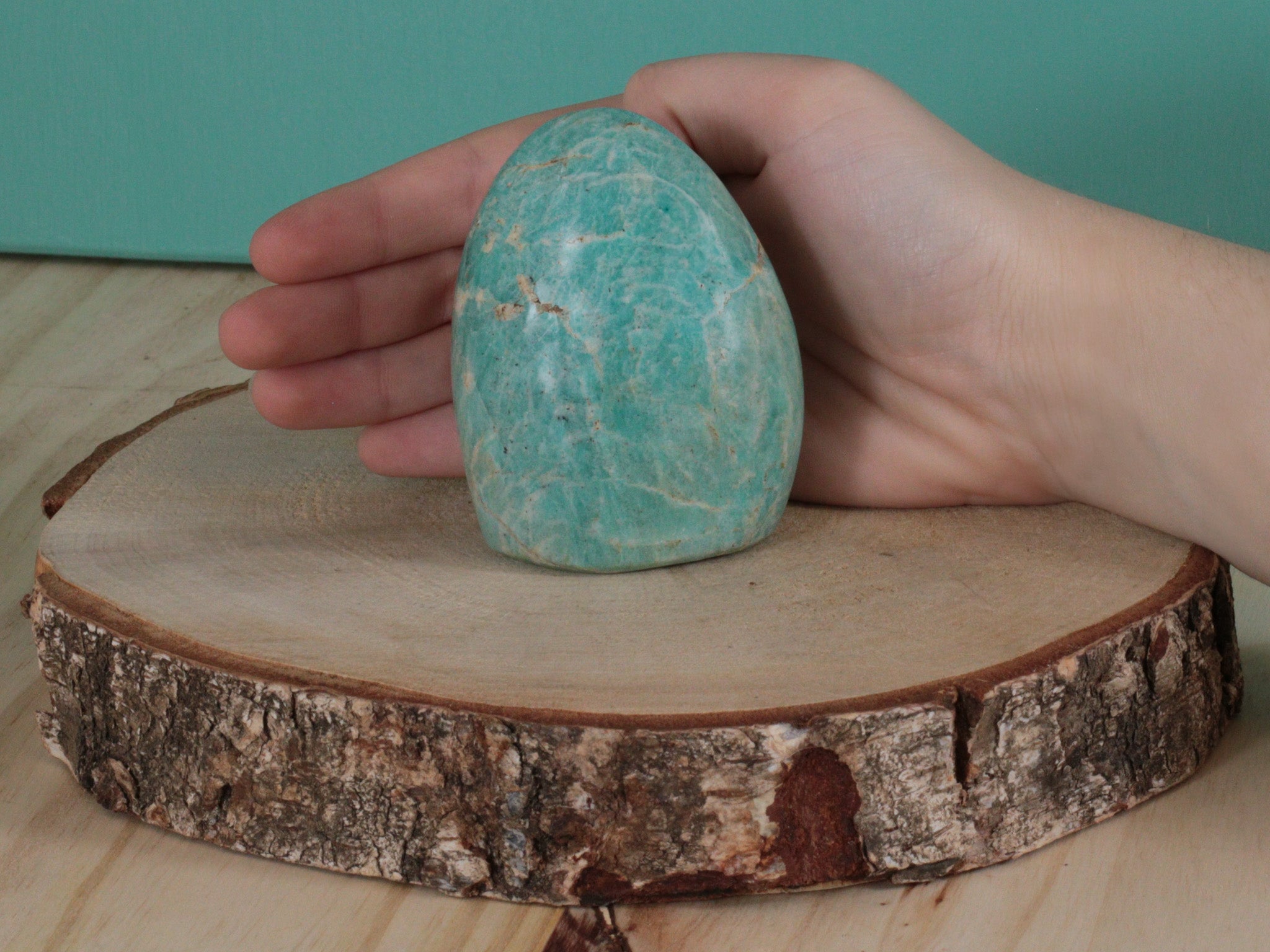 Avoir une pièce unique en pierre naturelle permet de profiter en continu de l’énergie de l'amazonite en s’entourant d’une énergie apaisante et rassurante. Cette pierre soutient celles et ceux qui traversent des périodes de stress ou de peines lourdes à porter. Elle aide à se libérer du poids émotionnel, à voir la vie sous un nouveau jour et à s’ouvrir davantage aux autres. Grâce à son lien subtil entre le cœur et la gorge, elle nous invite à exprimer nos vérités profondes depuis un espace de douceur et de sincérité.