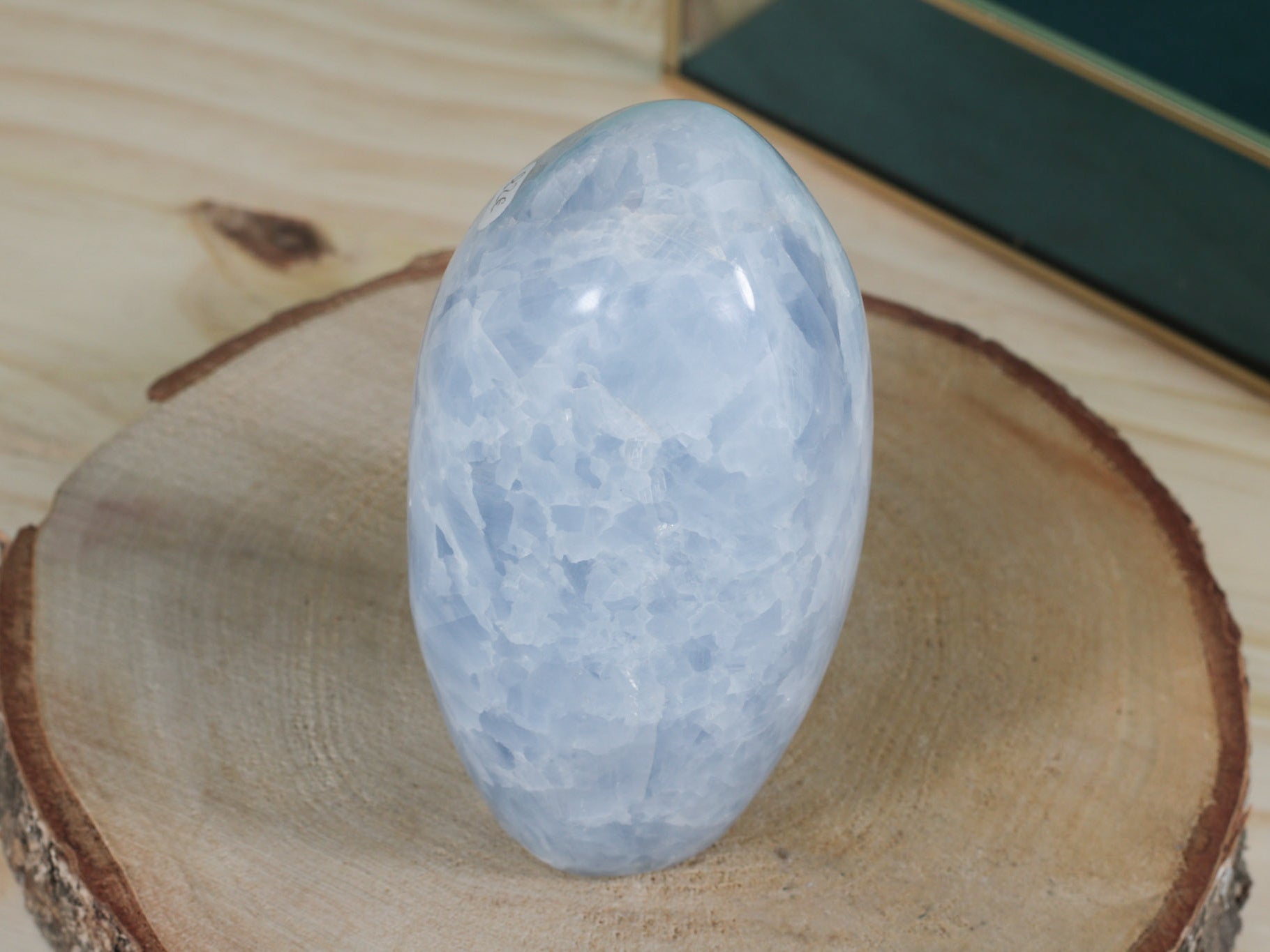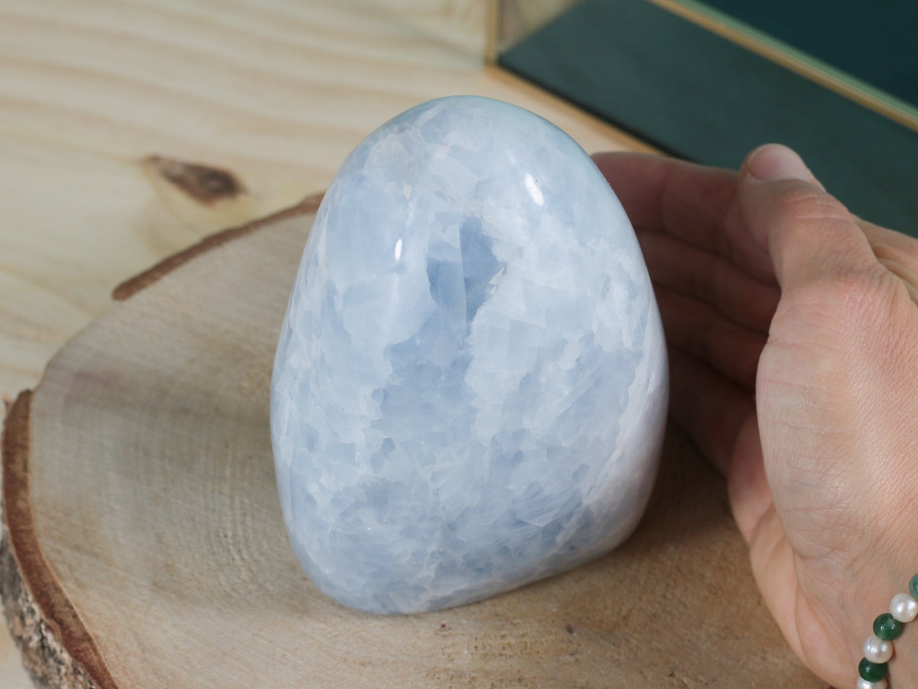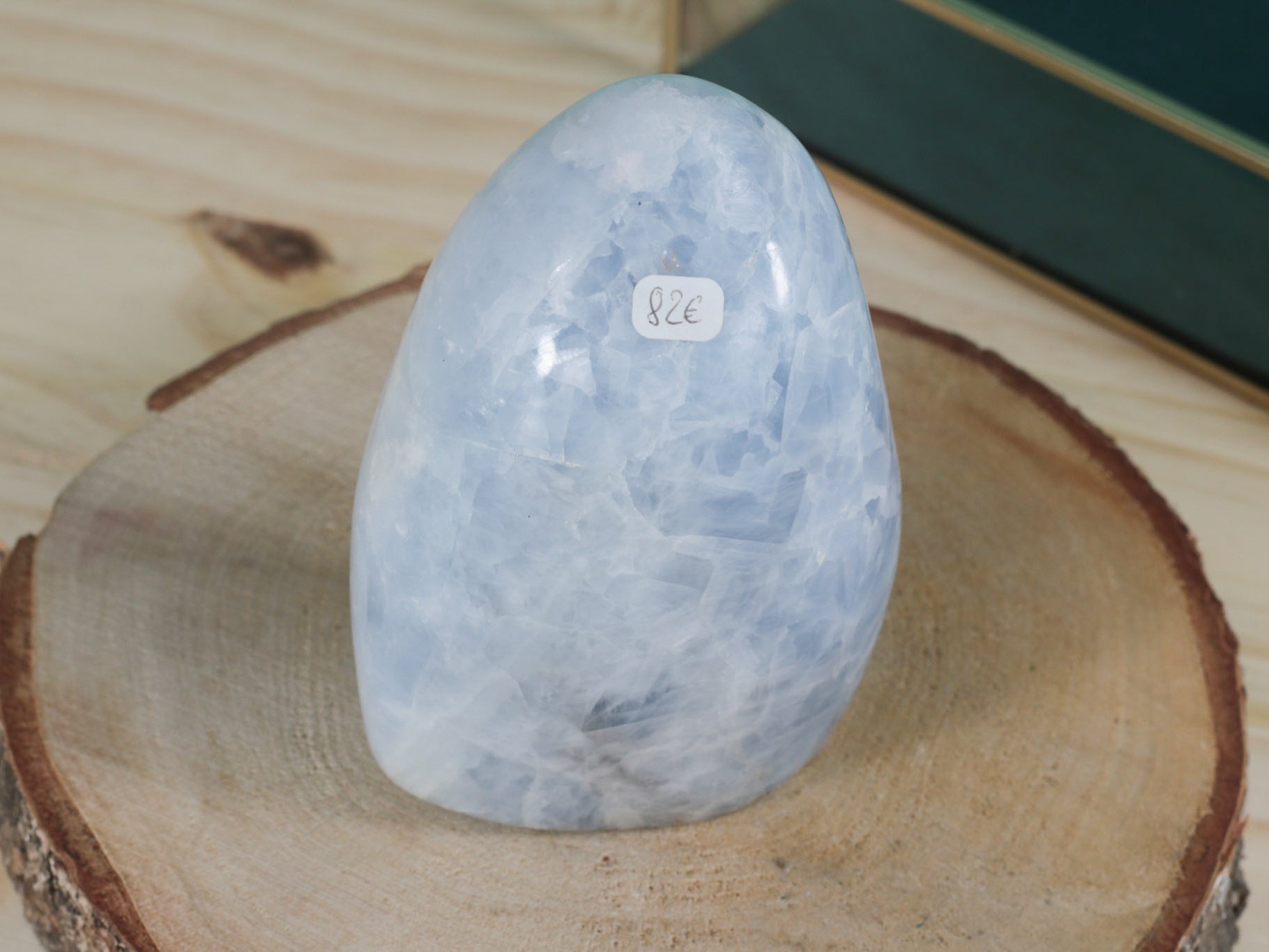 Découvrez la pièce unique en Calcite Bleue, une pierre naturelle douce et apaisante, réputée en lithothérapie pour favoriser la paix intérieure, alléger les tensions et rétablir une communication fluide et bienveillante.