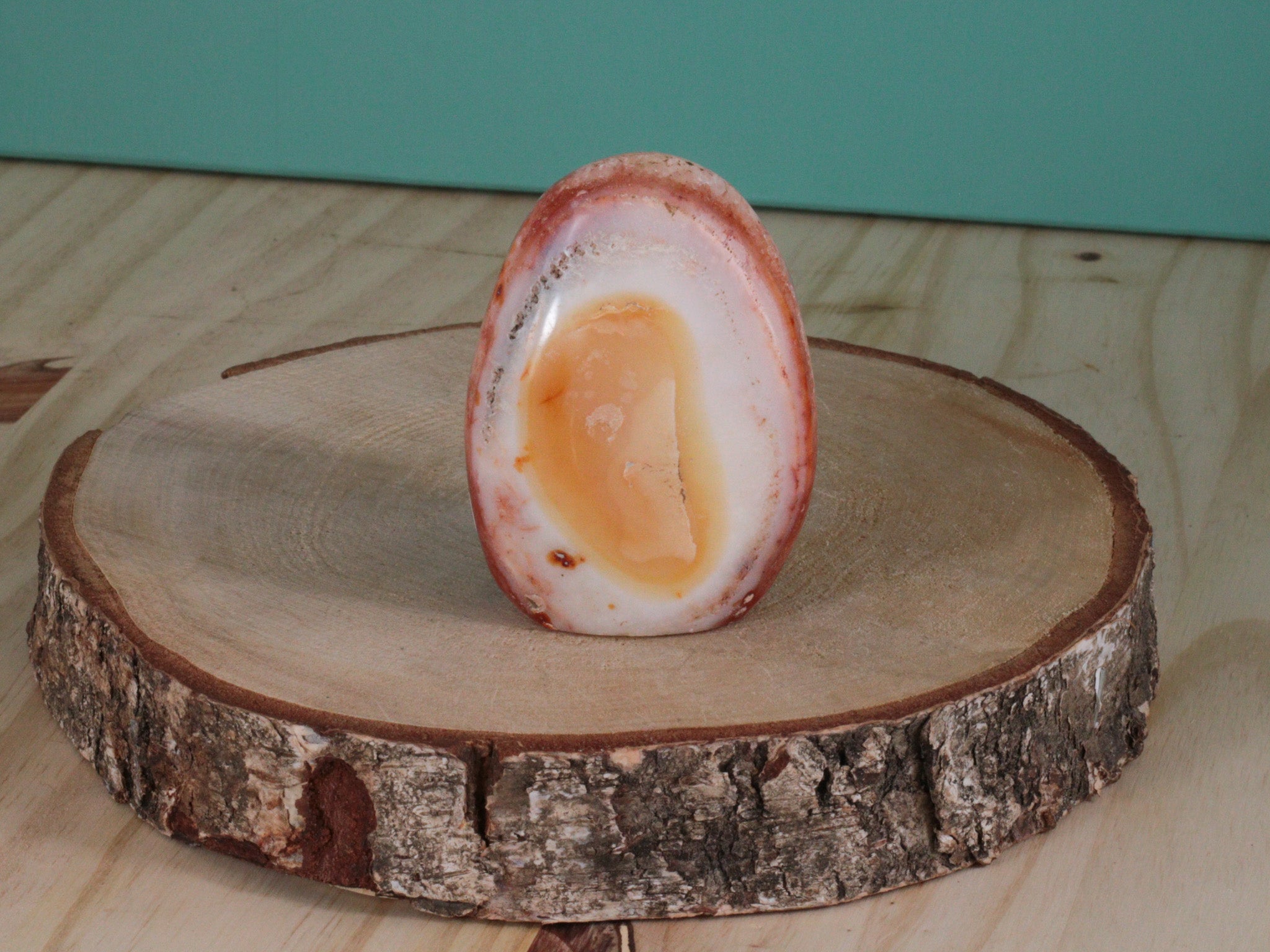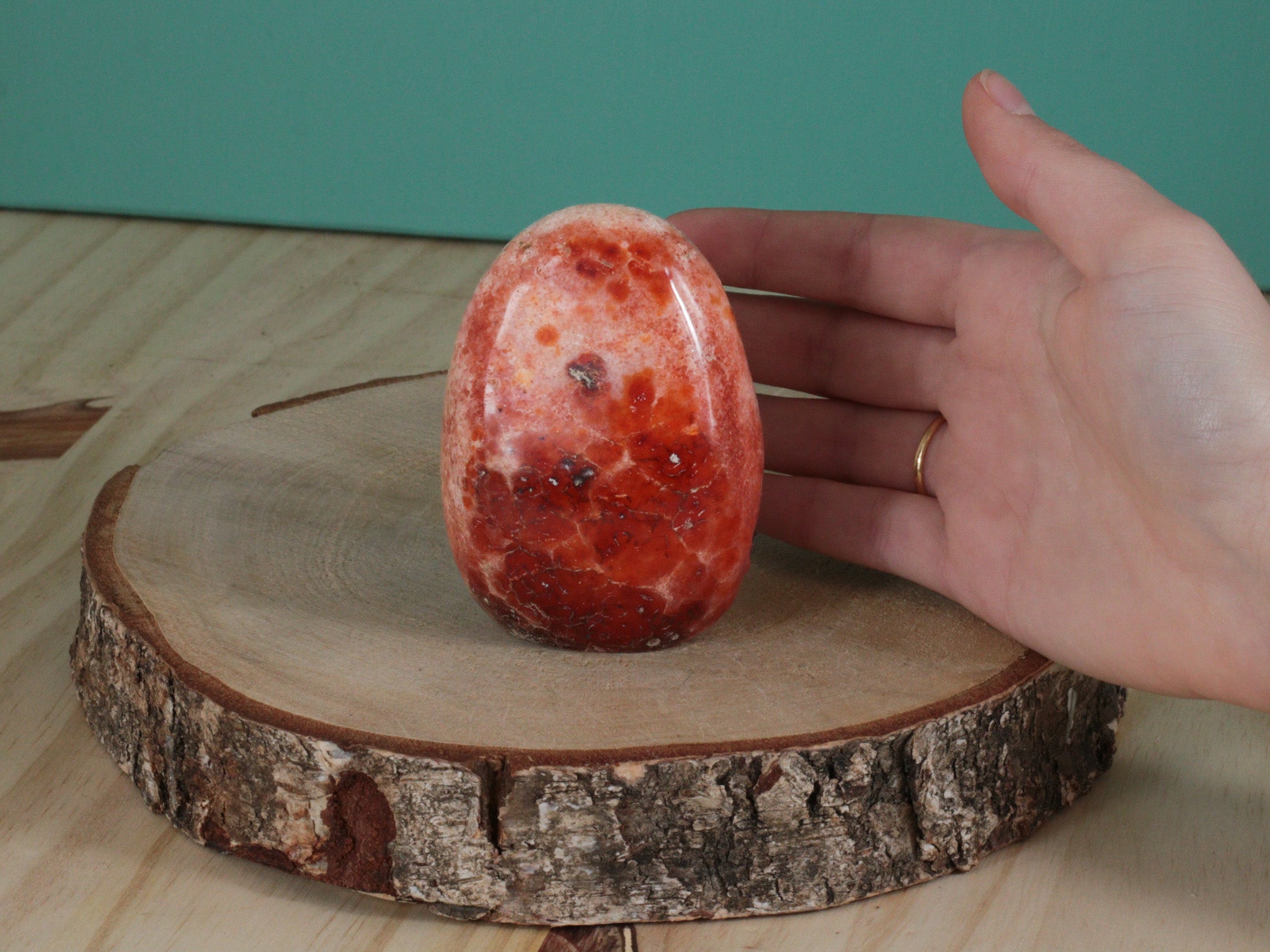 Découvrez la pièce unique en Cornaline, une pierre naturelle chauffée aux tons orangés et chaleureux, connue depuis l’Antiquité pour sa puissance énergétique et son lien profond avec la vitalité, la créativité et la sexualité. Très présente en lithothérapie, la cornaline est une pierre joyeuse qui réveille la passion de vivre et encourage à passer à l’action. L'immense majorité des cornalines présentes sur le marché, y compris celle-ci, est chauffée par l'homme.