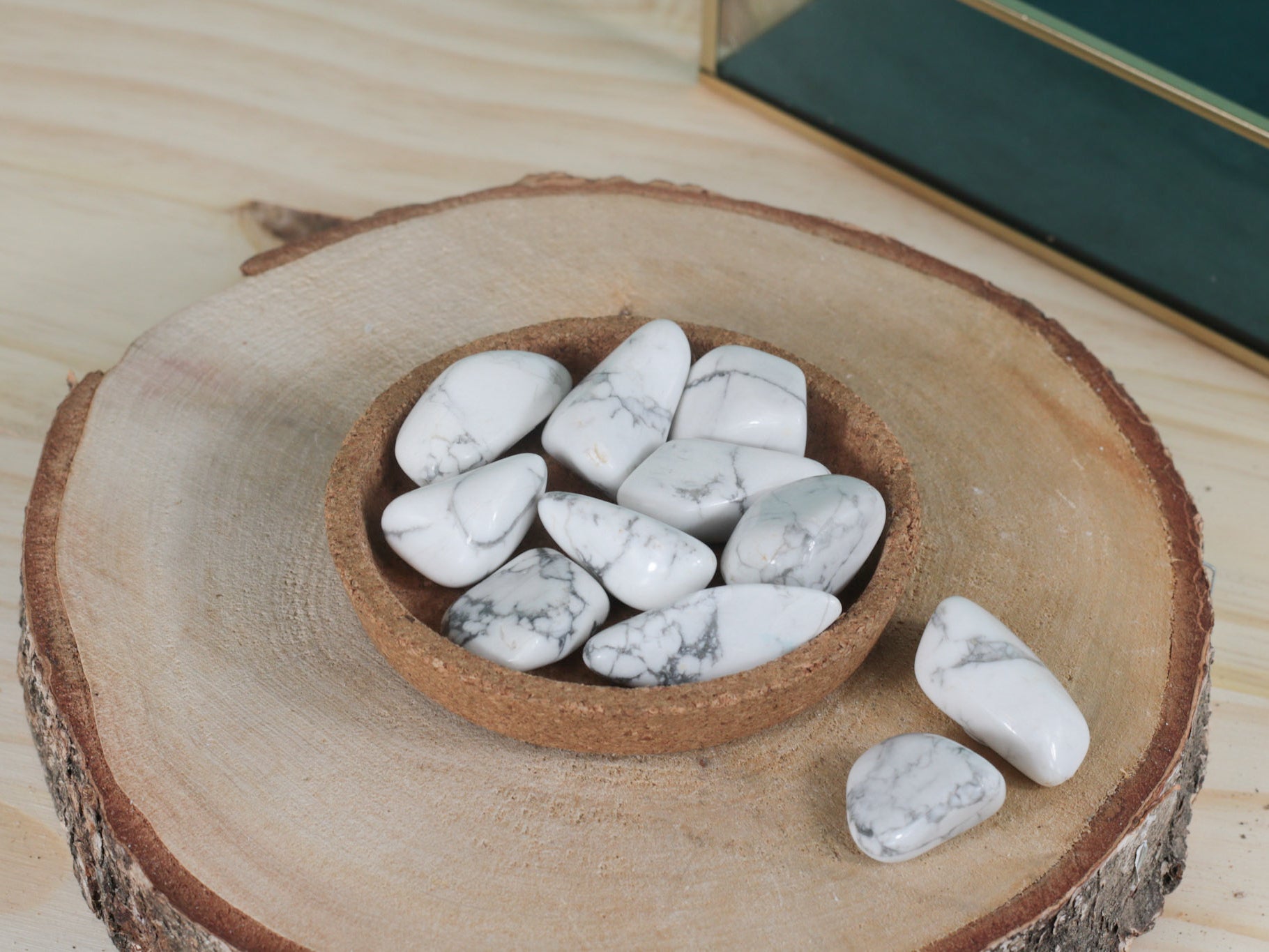 Découvrez la pierre roulée en Howlite, une pierre naturelle blanche veinée de gris qui invite à la paix intérieure et à la stabilité émotionnelle. Connue pour ses vertus calmantes, la Howlite est une alliée précieuse pour apaiser le mental et ramener la cohérence entre les pensées, les émotions et les actions. La howlite possède les mêmes propriétés que la magnésite mais les distille plus doucement.