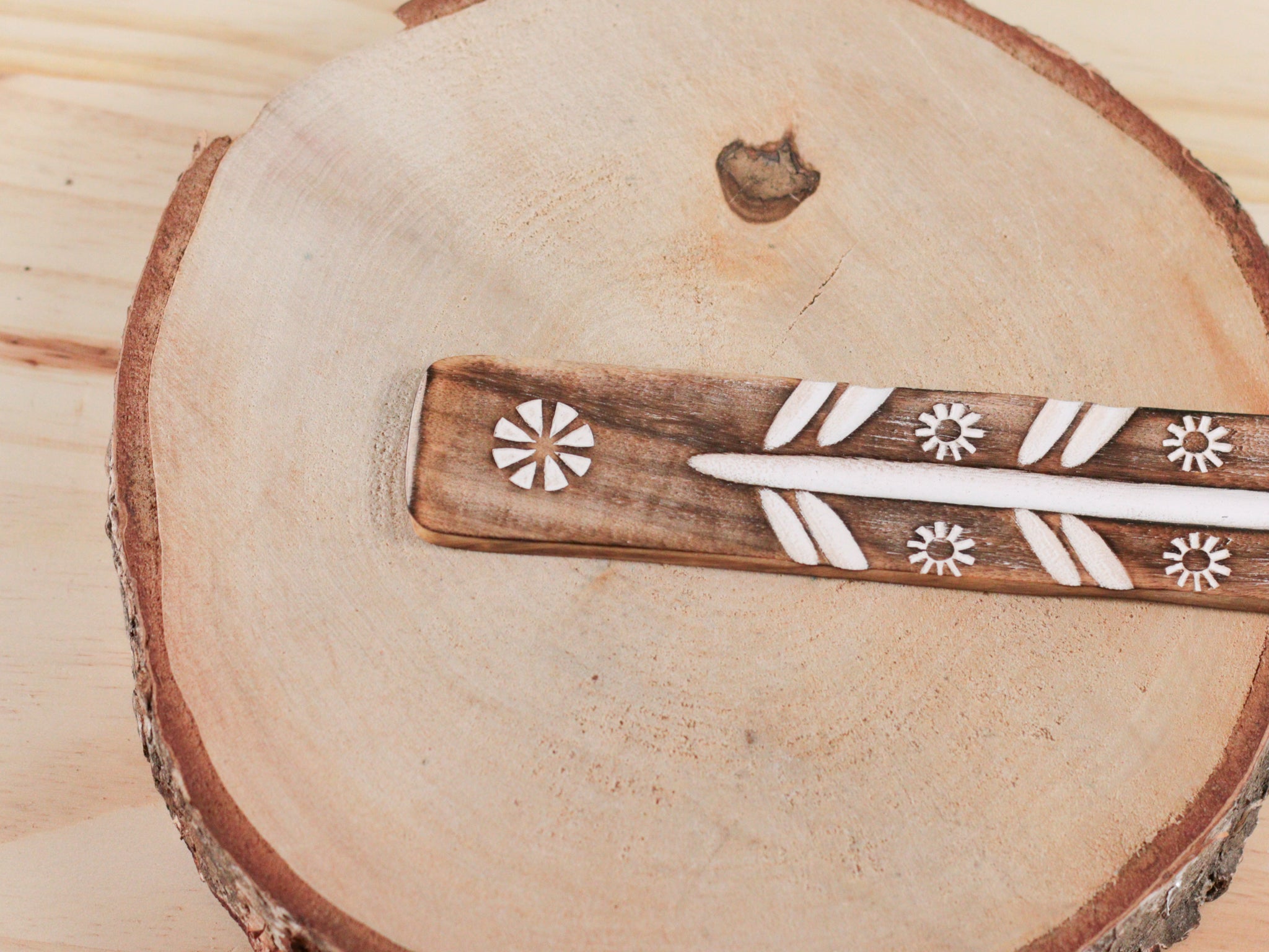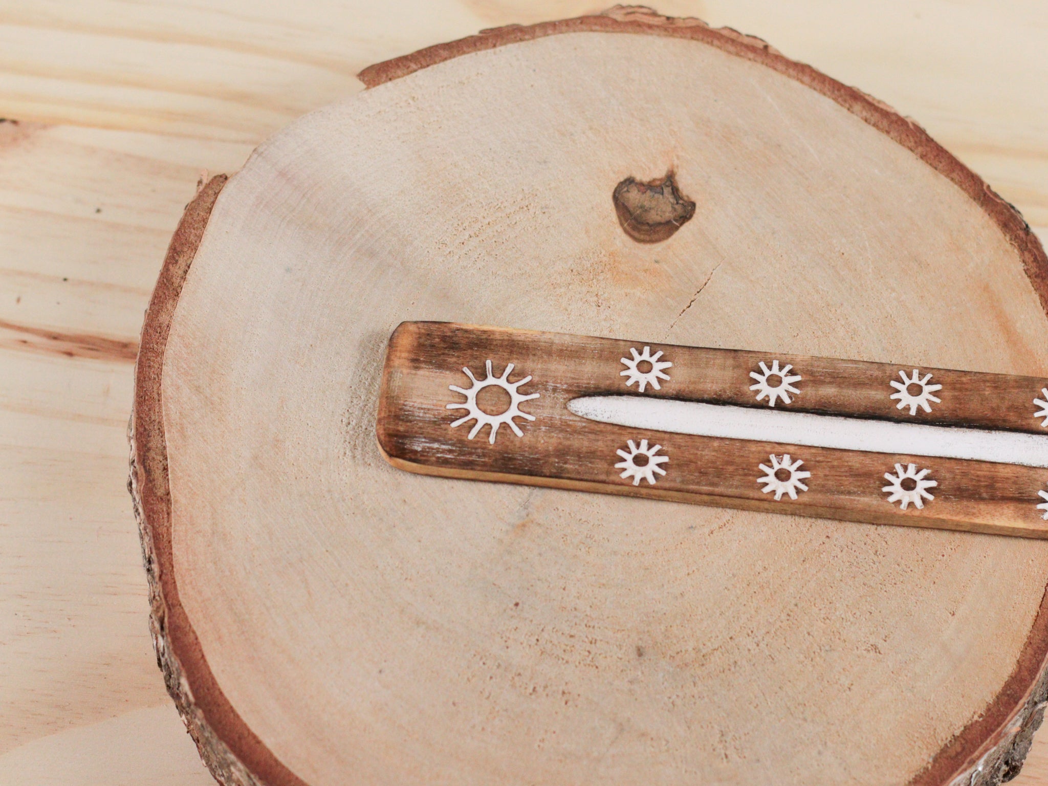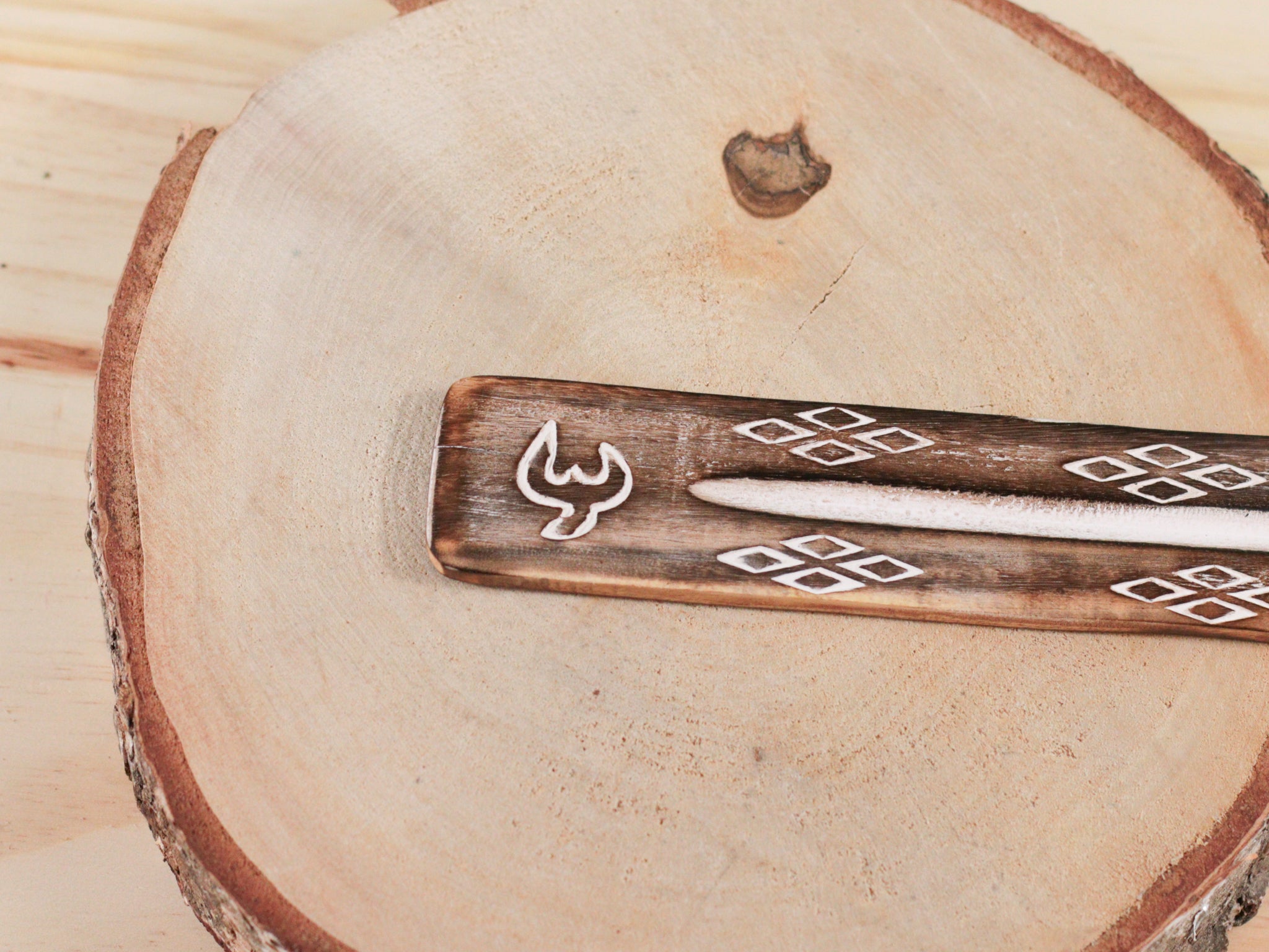 Porte-encens en bois gravure blanche – Support pour encens en bâton & purification énergétique