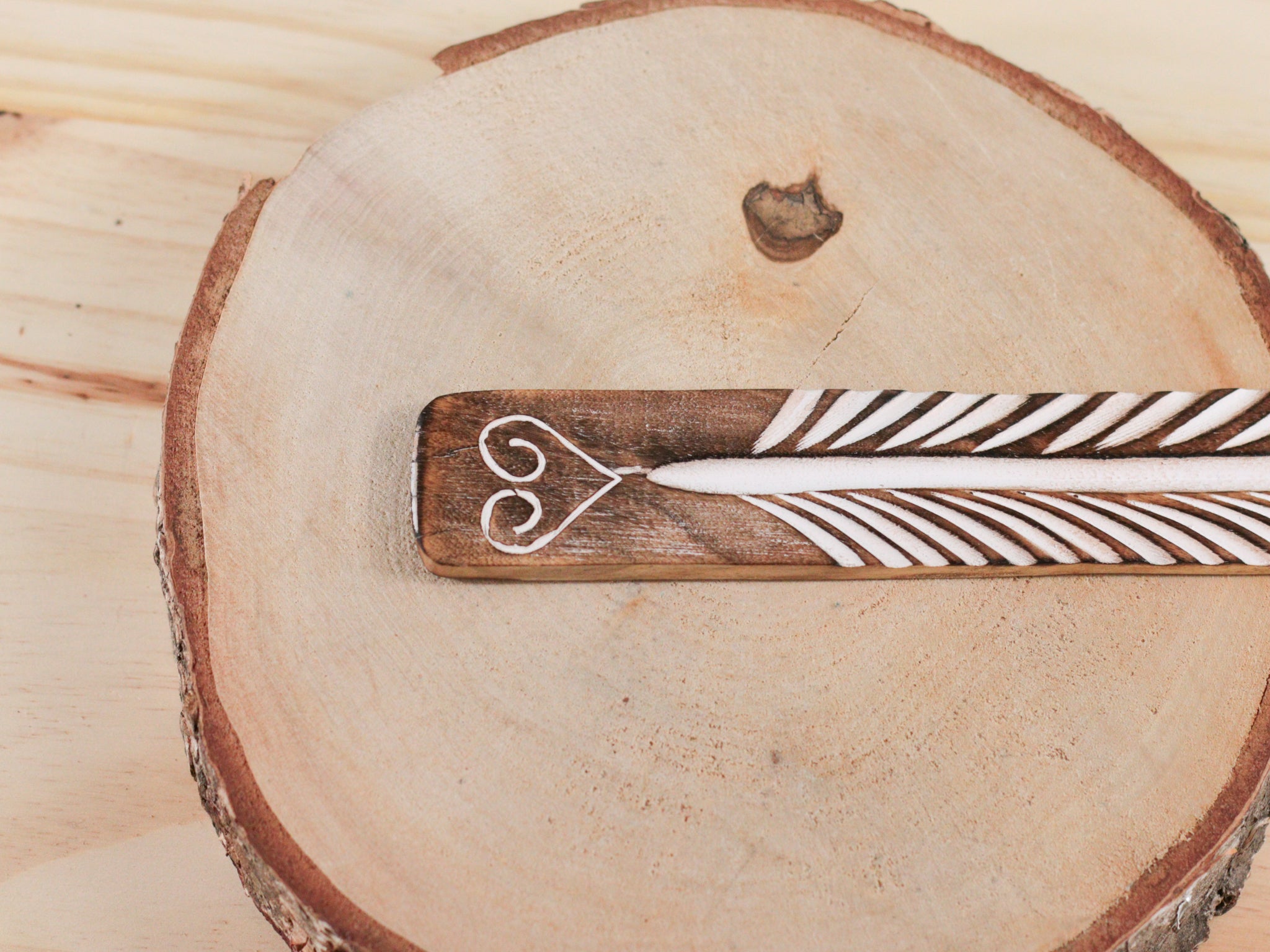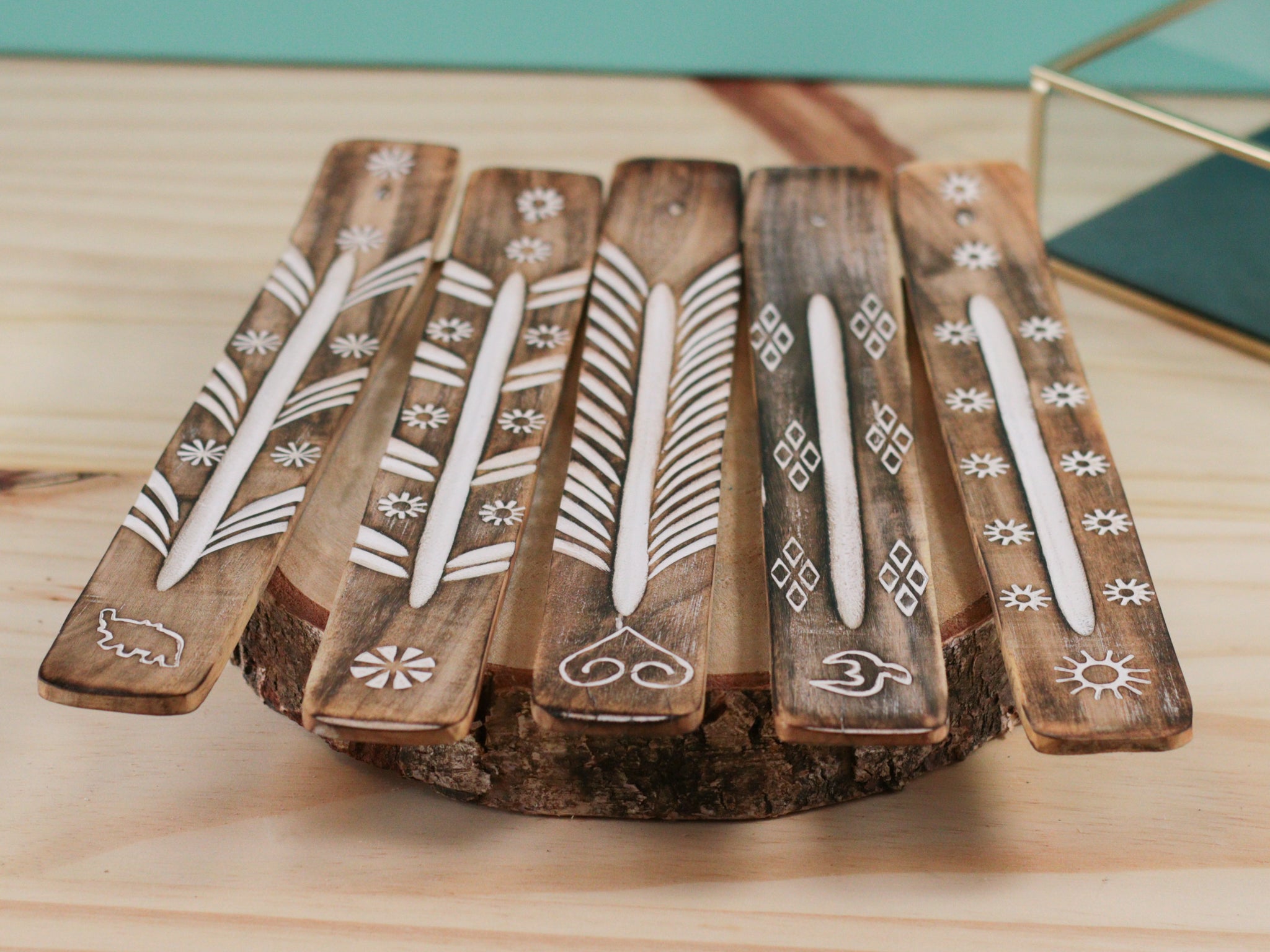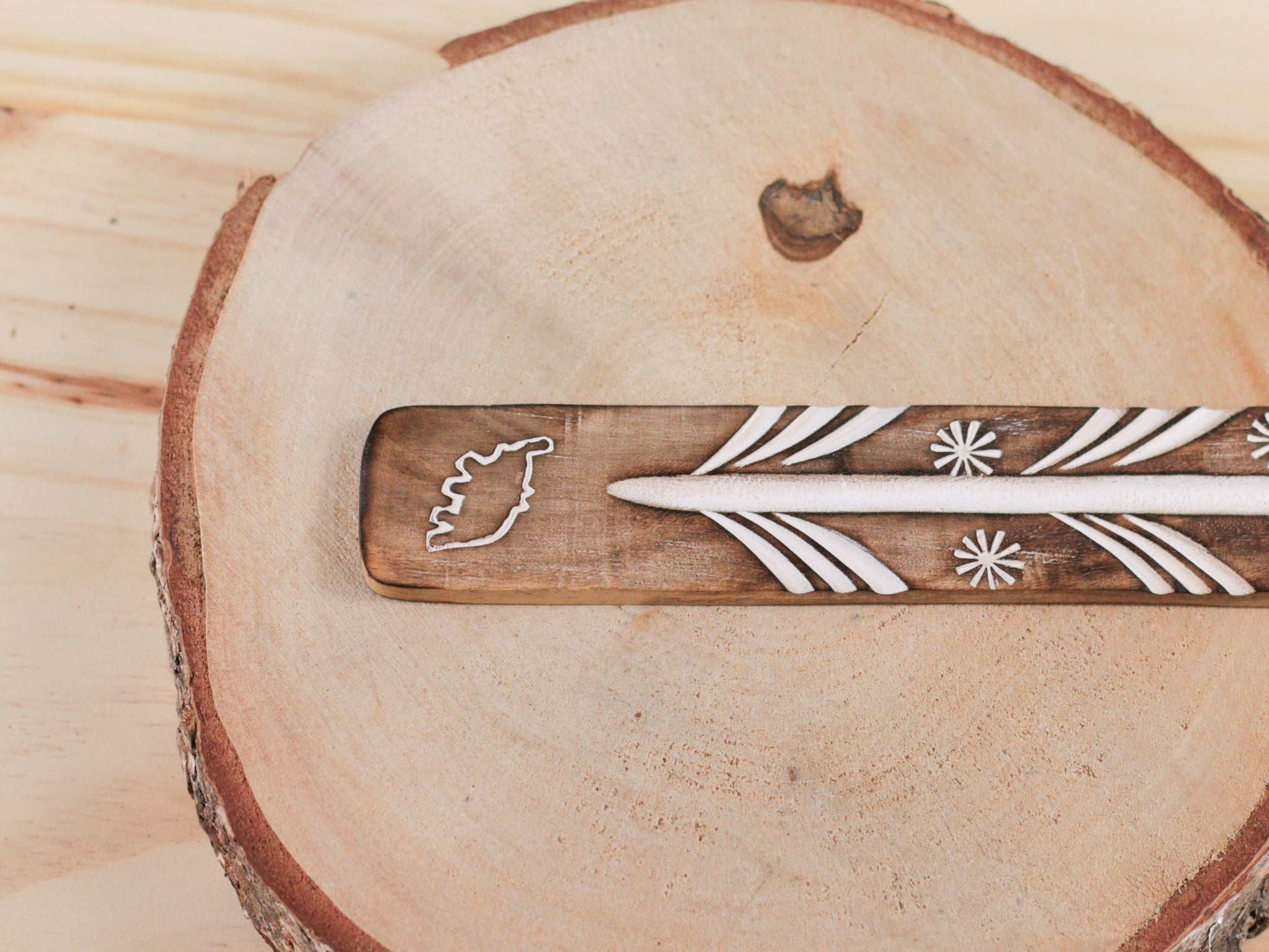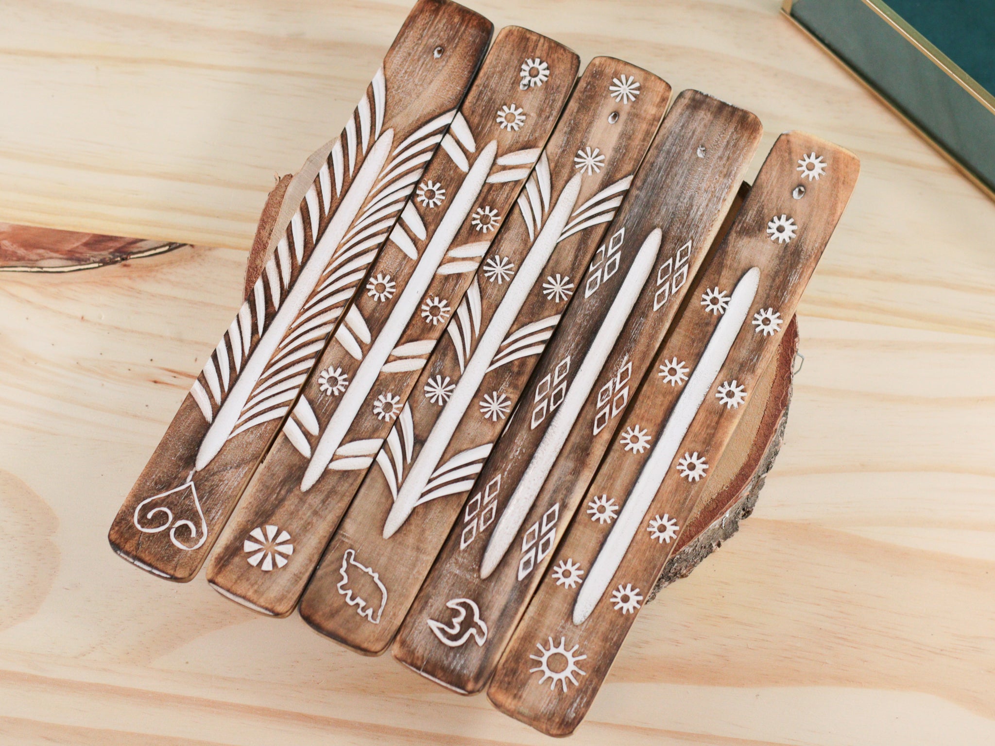 Porte-encens en bois gravure blanche – Support pour encens en bâton & purification énergétique