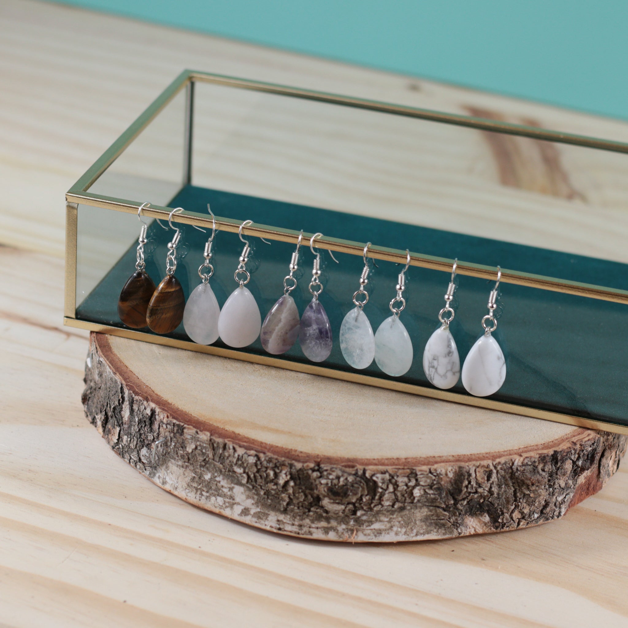 Découvrez les boucles d’oreilles goutte, un bijou élégant qui allie beauté et énergie des pierres naturelles. Chaque pierre diffuse ses propriétés uniques tout en sublimant votre style, pour un accessoire à la fois raffiné et bénéfique pour votre bien-être.