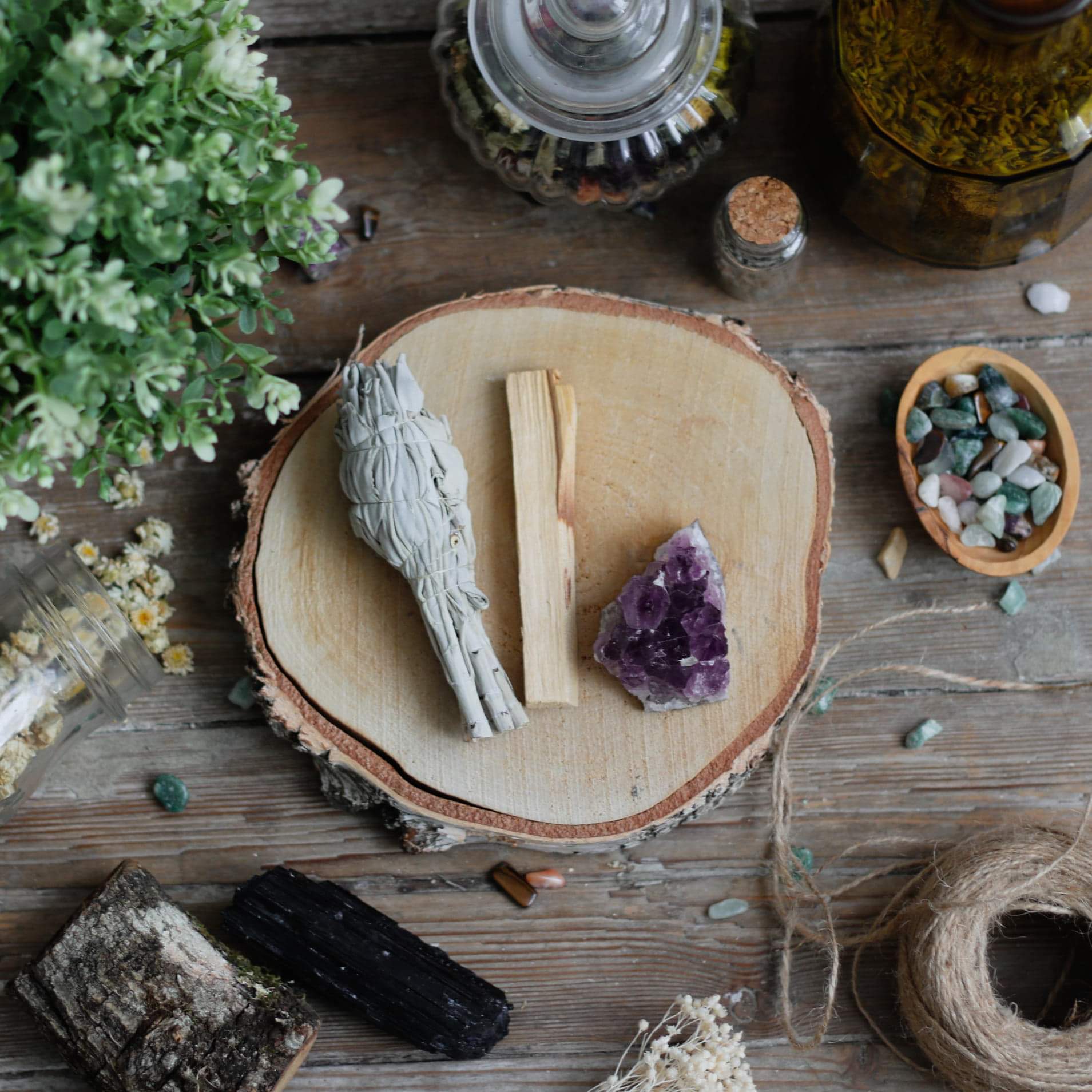 - 🌿 Un bâton de sauge blanche : utilisé traditionnellement pour purifier les lieux, les objets et les énergies.