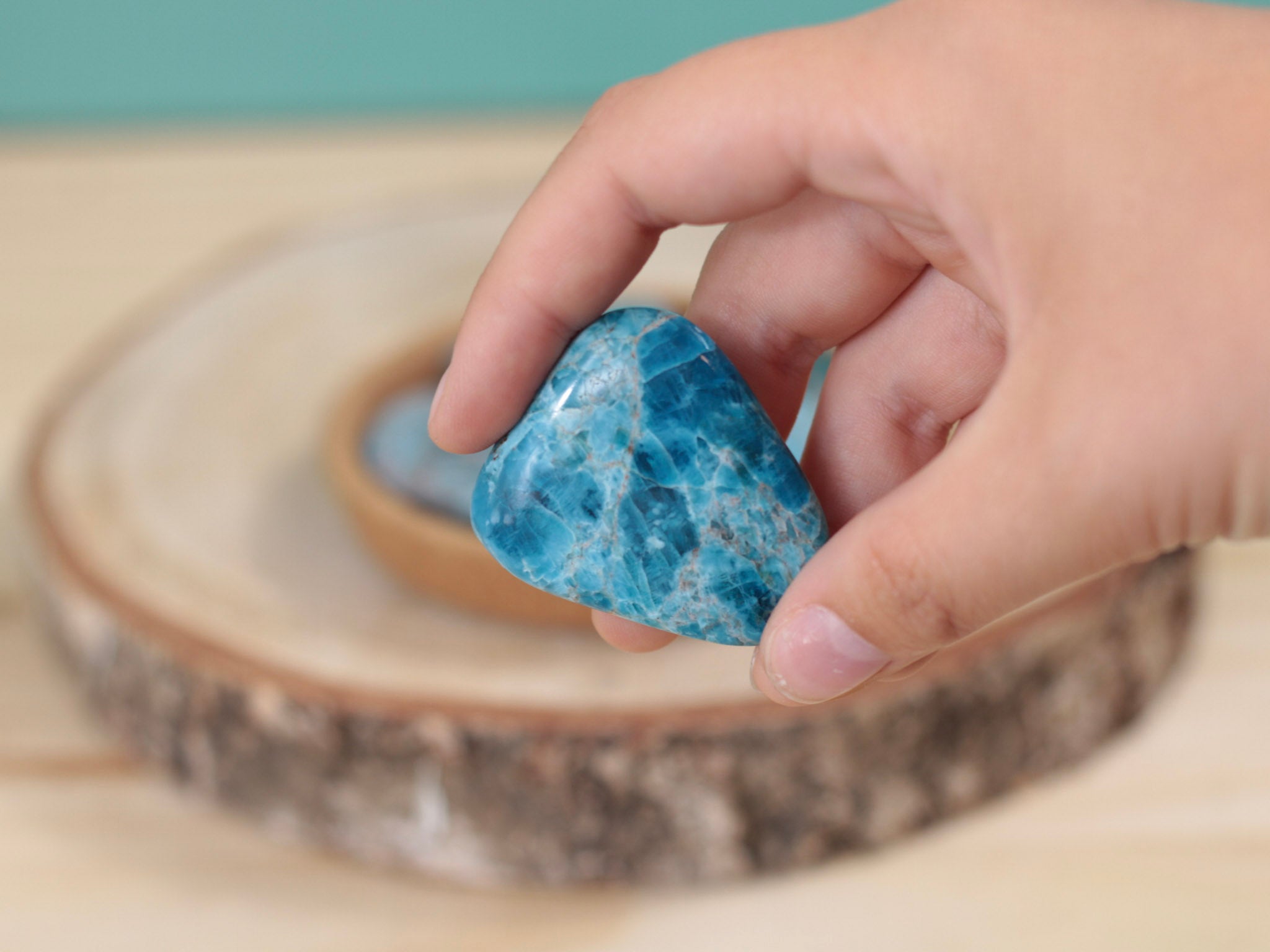 L’apatite est une merveilleuse pierre pour refaire nos réserves d’énergies. Elle nous permet de travailler sur notre passé, sur ce qui a été gardé à l’intérieur pendant des années et oser le nommer (dans le cadre d’une thérapie par exemple). C’est une pierre réputée en ce sens pour les burn-out. Elle apaise le mal-être émotionnel et la tristesse.