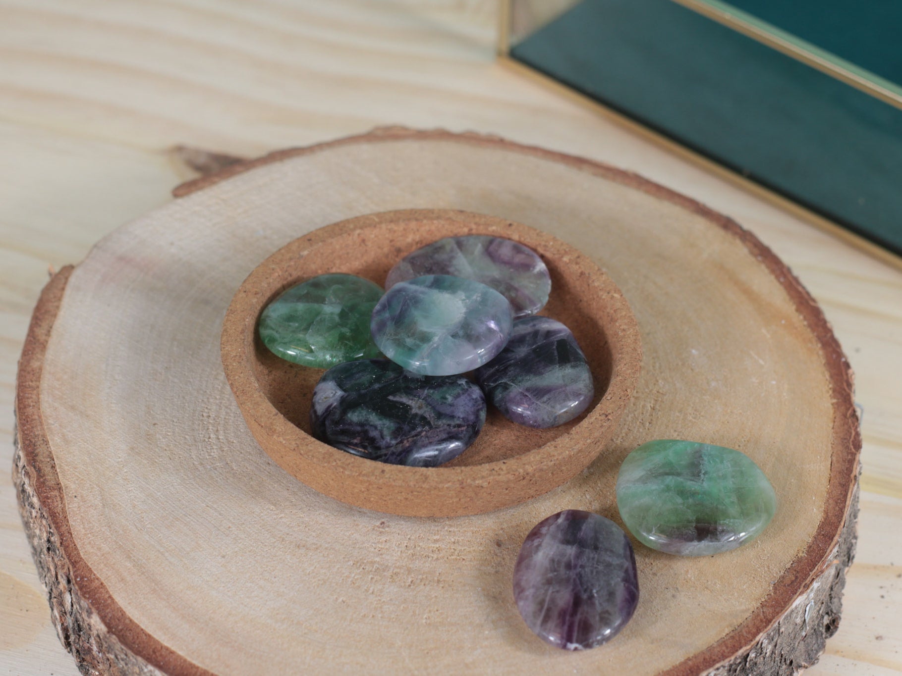Découvrez le galet en Fluorine, une pierre naturelle aux reflets fascinants allant du vert au violet en passant par le bleu et le jaune. En lithothérapie, la fluorine est reconnue pour favoriser la concentration, la réflexion et la stabilité mentale, tout en harmonisant les énergies du corps et de l’esprit.