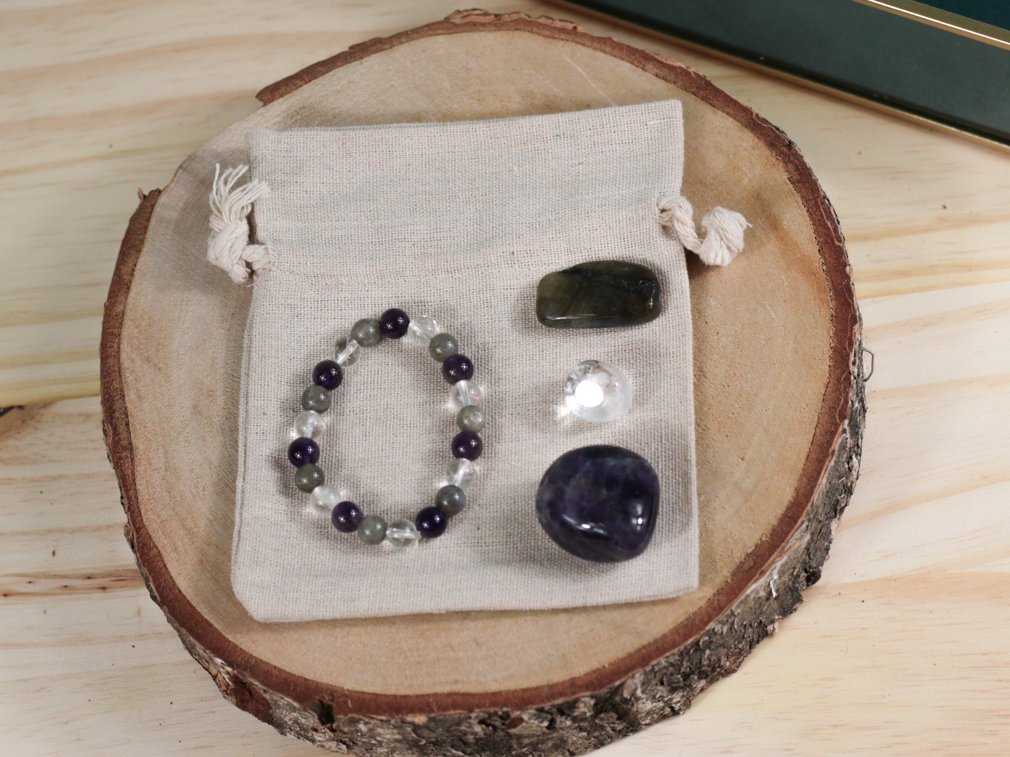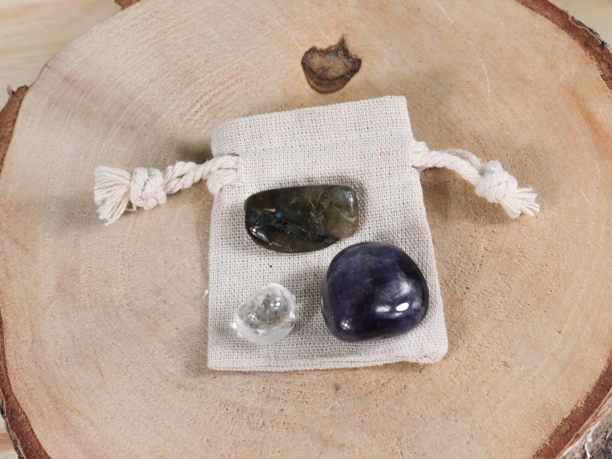 Ces trois pierres complémentaires travaillent ensemble pour apaiser le mental compulsif, renforcer l’ancrage et favoriser une meilleure réception des messages intuitifs. Elles aident à faire le tri entre ce qui relève de l’intuition profonde et ce qui appartient au mental, afin d’amener plus de clarté, de discernement et de confiance dans ce que tu ressens.